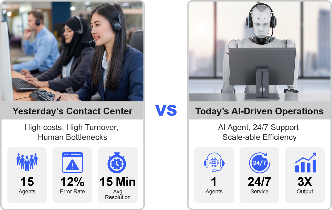 Across every vertical—from healthcare to finance—SuperCenter delivers emotionally intelligent, fully autonomous AI agents that engage like humans, but without the human overhead.